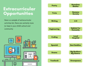 A parent’s role in extracurricular activities is important for logistical support. How will your child get to their activities, meetings, recitals, or games? Do they have an important date that interferes with a family vacation or an important birthday? Planning ahead and being organized are skills that are pivotal for all college students and practicing early on will benefit your entire family.