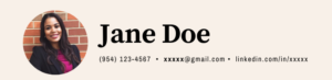 Contact Information: The contact information section should be the focal point of your resume. Your name should be the largest font on the resume with your phone number, email, and address provided below it. Be sure to use a professional email and avoid emails with the following domains @yahoo.com, @aol.com, and @bellsouth.net.