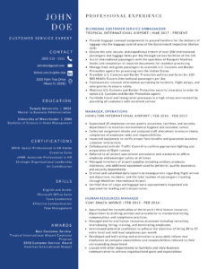 Format: Formatting is a large and very important part of your resume. After you’ve drafted a resume, ensure all stylings and headings are consistent and use a professional font in size 10.5 – 12 point. Avoid curly, cursive, or bubbly fonts. You can also use color on your resume to stand out. Choose colors that are easy to read on white paper and try to limit them to headings or subheadings. All important information such as job functions in the bulleted information should be written in black font.