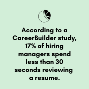 This is incredibly important for your resume to make it to the lap of a hiring manager. According to Jobscan, over 98% of Fortune 500 companies use an Applicant Tracking Systems (ATS). “Rather than manually reviewing each resume, recruiters and hiring managers can search for resumes based on keywords, or have the system filter or automatically rank applicants.”